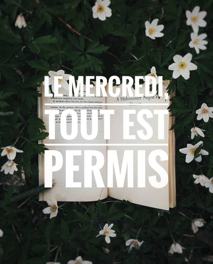 Salut à tous, bienvenus sur mon blog. Aujourd'hui, comme tous les mercredis, je vous retrouve pour un rendez-vous livresque qui s'appelle : "Le mercredi, tout est permis." Si vous êtes nouveau sur ce blog je vous invite à consulter cet article pour en savoir plus sur ce challenge.;) Alors sans plus tarder je vous laisse… Lire la suite 16# Le mercredi, tout est permis